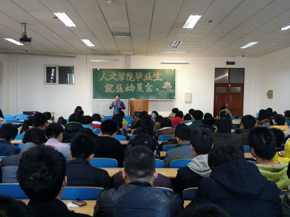 2015届毕业生是人文社会科学学院有史以来毕业生人数最多的一届,为进一步扎实有效的推进毕业生就业工作,该院针对2015届毕业生开展了一系列有针对性的工作。9月开展了为期一个月的就业宣传月活动。10月开展了为期一个月的个性化简历制作比赛和模拟招聘会。为引导毕业生积极参与11月9日【官网】召开的大型招聘会,召开了2015届毕业生就业动员大会,人文学院党委书记林艳紧紧围绕如何“实现就业”,系统的阐释了实现就业的意义,鼓励考研的同学积极参加招聘会,实现考研就业双保险。