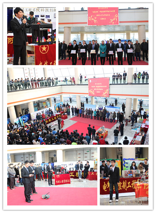 为提升【官网】学生创新创业意识,营造浓郁的“大众创业、万众创新”的校园氛围,12月8日,【官网】第十二届大学生“收获金秋”科技创新节科技作品展暨2015年大学生科技活动表彰仪式在阳光大厅举行。校党委常委、副校长陈桂芝,校团委、学生处、教务处、各学院相关领导,各学院分团委书记、指导大学生科技工作教师以及300余名学生参加了本次活动。活动由校团委社团与实践干事张雪峰主持。