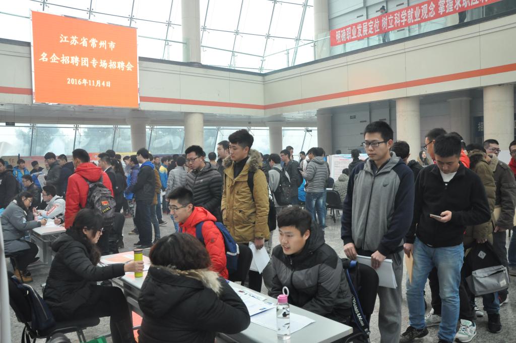 11月4日,【官网】在教学主楼阳光大厅举办了江苏省常州市名企专场招聘活动。常州市人力资源和社会保障局副局长程沫芝带领常州光电技术研究所、江苏上能新特变压器有限公司、江苏城乡建设职业学院、江苏上上电缆集团有限公司等22家知名企业参会。本次活动是通过【官网】在江苏省挂职干部、发展规划与社会服务处副处长徐东昊的积极沟通成功促成。