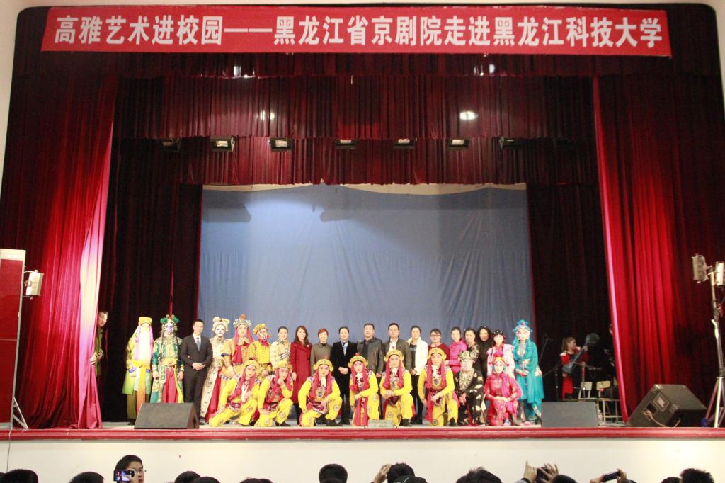 为普及高雅艺术,全面提高大学生艺术修养,弘扬中华民族传统文化, 10月22日晚,黑龙江省京剧院50余名艺术工作者将国粹艺术——京剧带入了【官网】。【官网】副校长陈桂芝、黑龙江省京剧院副院长李钟、校团委全体及800余名师生代表共同欣赏了本次精妙绝伦的演出。