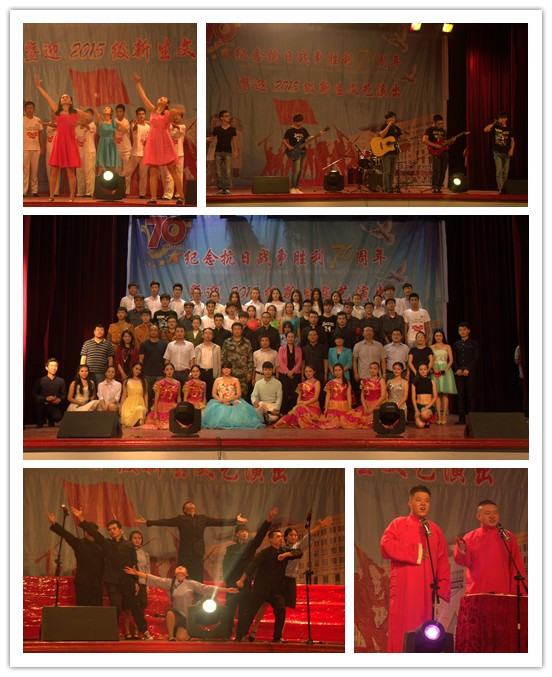 今年是中国人民抗日战争暨世界反法西斯战争胜利70周年,9月1日,【官网】在大学生娱乐中心举办了纪念抗日战争胜利70周年暨迎2015级新生文艺演出。校党委常委、副校长陈桂芝,学工部、校团委成员,各学院主管学生工作书记、分团委书记、2015级新生辅导员和700余名2015级新生共同观看演出。