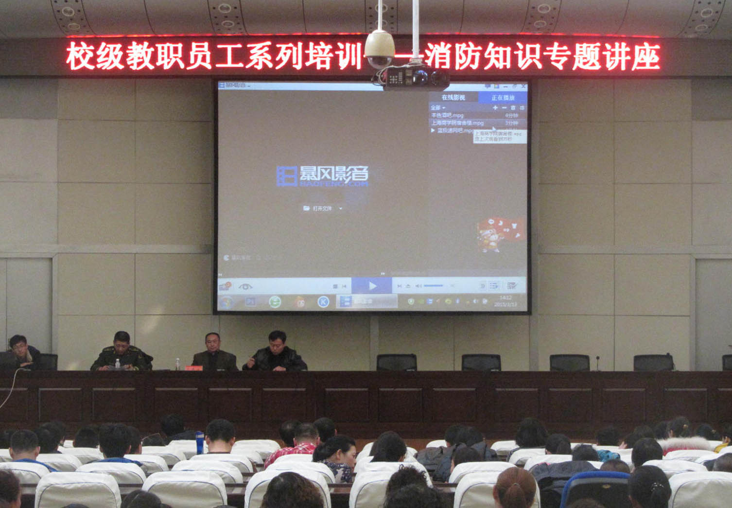 为了贯彻落实黑龙江省公安消防总队关于强化《消防安全管理四个能力建设》的通知要求,切实增强【官网】师生消防安全意识,掌握消防知识,提高消防工作管理水平和防范能力,【官网】特邀哈尔滨市松北区公安消防大队宣讲团高贵廷主任、魏欣参谋于3月12、13日分别举行学生干部、教职工春季消防安全培训讲座。各单位办公室主任、教研室、实验室(各中心、部)主任、各学院辅导员、后勤各中心管理人员、学生公寓管理员(保洁员)以及近300名主要学生干部参加了此次培训。