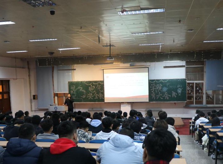 为扎实推进“爱国 润德 勤学 励志”主题教育,围绕学生安全自救能力提升的工作重点,按照学院对于新生入学教育的系列安排,教育全体2020级学生高度树立“隐患险于明火 防范胜于救灾 责任重于泰山”的消防安全意识。11月2日晚,电气学院在教学主楼WN0401分2场组织召开了大学生安全教育大会。特邀校保卫处副处长张景奎作为主讲教师,学院2020级辅导员郑红岩、李婉莹和全体学生参加了大会,大会由学院党委副书记宋玉彬主持。