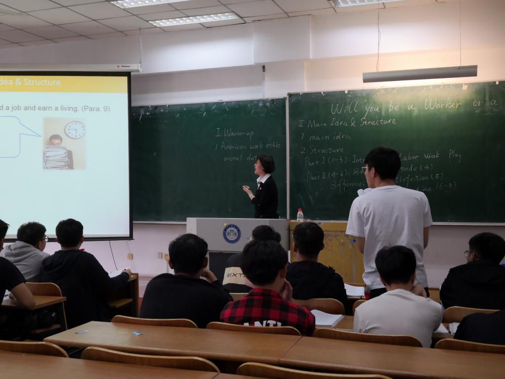 为贯彻落实全国教育大会、本科教育工作会议、学校教代会的精神,引导广大教师将“以本为本”、“四个回归”落到实处,以实际行动实践【官网】“本科教育思想大讨论”成果。国际教育学院组织教师开展系列公开课互动,5月14日,举办“金课打造”系列——教研室主任、党支部书记公开课”在科技大厦S512举行。国际教育学院全体无课的教师及全校热爱英语的教师和学生共同聆听了本次公开课。