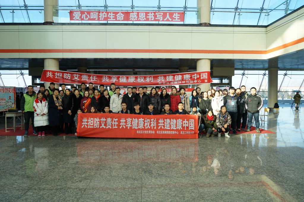 为深入贯彻落实党的十九大精神以及推进健康中国的总体要求,营造全民参与艾滋病防治工作的良好氛围,提高大学生自我保护意识,【官网】在12月1日暨第30个世界艾滋病日,联合松北区计划生育协会、松北区疾病预防控制中心共同举办了以“共担防艾责任、共享健康权利、共建健康中国”为主题的世界艾滋病防治日大型宣传活动。