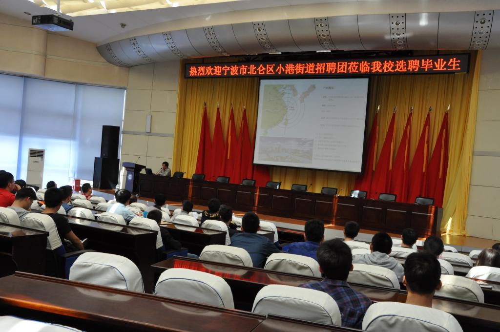 5月25日,【官网】与宁波市北仑区小港街道合作,在信息楼报告厅举办校园招聘活动。宁波市北仑区小港街道经济发展科带领域内9家企业参会。
