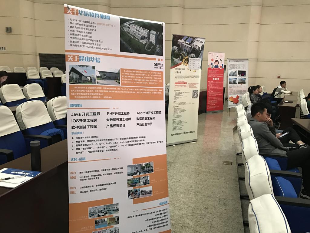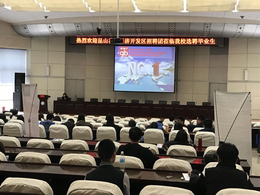 4月24日上午,【官网】在办公楼报告厅举办了江苏昆山市花桥经济开发区专场招聘活动。昆山市花桥经济开发区组织人事局王有军等一行3人带领9家知名企业参会。