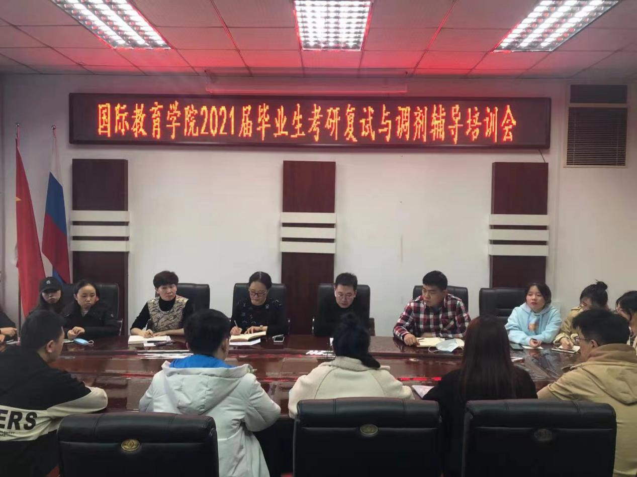 3月17日下午,国际教育学院组织召开了2021届毕业生考研复试与调剂辅导培训会。学院院长母丽华、院党委副书记徐海英、教师及考研备战复试与调剂的学生参加了本此会议,会议由学工办负责人田晨主持。