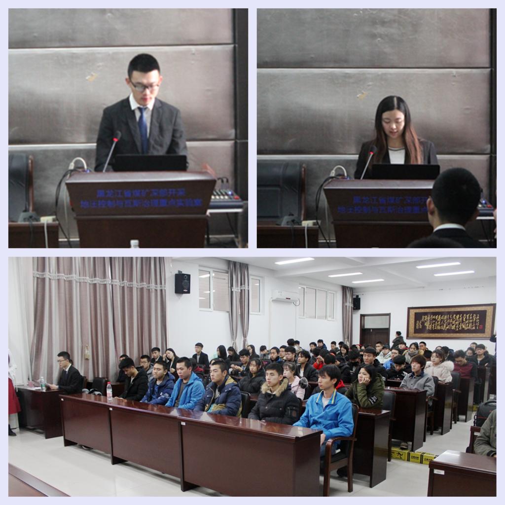学院党委书记赵喜江代表矿业学院对采矿03-1班全体校友和广州市中海达测绘仪器有限公司哈尔滨分公司给予学院人才培养的支持表示衷心的感谢,对受表彰的学生表示热烈祝贺。他指出,近年来,矿业学院高度重视校友和校企合作,坚持“搭建平台、加强交流、贴心服务、合作共赢”的总体工作思路,把促进校友进步与发展、加快推进校企合作进程作为一项重要工作来抓,为应用型人才培养提供了坚强的支撑。最后,他对青年学生提出三点希望:一是坚定信念,做有理想、有抱负的时代青年;二是勤奋学习,做有知识、有才干的时代青年;三是修身明德,做有品德、有魅力的时代青年。