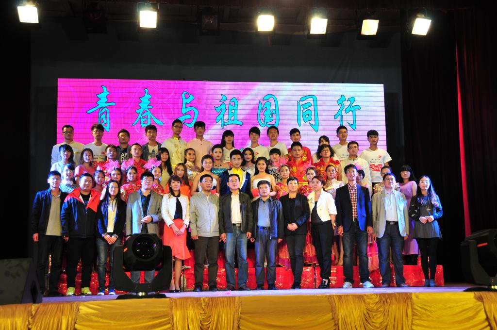 9月26日,【官网】以“青春与祖国同行”为主题的庆祝祖国65华诞暨迎2014级新生晚会在大学生娱乐中心激情上演。台上欢歌热舞,精彩纷呈;台下热情互动,青春洋溢。校团委书记薛立刚、环境与化工学院党委书记周国江、理学院党委书记王建国、学生处副处长曲长海、校团委副书记苗雨、管理学院党委副书记徐建一以及各学院分团委书记和800余名2014级新生共同观看演出。