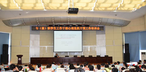 为深入贯彻落实黑龙江省教育厅《关于进一步加强和改进全省普通高等学校学生心理健康教育工作的意见》(黑高工委联字[2012]37号)以及《黑龙江省高校学生心理危机干预实施办法》(黑教学[2009]78号)等相关文件精神,准确解读《中华人民共和国精神卫生法》(2012年10月26日颁布),按照【官网】2014年学生工作计划总体要求,进一步提升专兼职学生工作干部专业化水平,丰富心理健康知识,特别是对大学生精神疾病识别与心理危机问题的处理等工作的了解,有效开展大学生精神疾病的危机排查与干预工作,学工部(处)于6月4日下午在【官网】办公楼报告大厅召开了学生工作干部心理危机干预工作培训会。