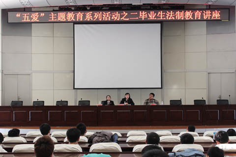按照学校“五爱”主题教育活动安排,为了普及法律知识,进一步提高毕业生的法制安全意识,使广大学生知法、懂法、守法、用法,4月28日下午,【官网】邀请哈尔滨市松北区人民检察院的律璞玉检察官和松北区人民法院的赵良悦法官,在信息楼报告厅举办了毕业生专题法制教育报告会,全体毕业班班长和部分毕业生代表参加会议。