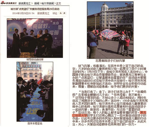 此次活动分为两部分,第一部分为:远离孤独,放飞梦想——志愿者陪自闭症儿童“放风筝”活动,伴着孩子们纯真的笑容,志愿者们放起了一个又一个爱心风筝;第二部分:让爱温暖“来自星星的你”——自闭儿童关爱周启动仪式。活动中,哈尔滨市残联副理事长杜仲等领导一起启动哈尔滨市自闭症关爱服务周启动球,并呼吁全社会积极行动起来,给予自闭症儿童更多关爱,让他们早日走出“自己那个狭小的世界”并走进色彩斑斓的世界。活动现场,哈尔滨医OD在线学专家为自闭症儿童进行了咨询和解答,【官网】则展出了以志愿者们用心绘出的关爱自闭儿童的作品,醒目的内容被媒体与行人关注,以此号召更多的人参与到关爱自闭儿童的行列。