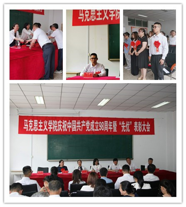 为庆祝中国共产党成立98周年,表彰先进、树立典型、弘扬正气,在学院师生中积极营造学习先进、争当先进、赶超先进的干事创业氛围。马克思主义学院于6月27日下午在学院二楼会议室组织召开庆祝建党98周年暨“先优”表彰大会,学院全体教师党员和学生党员代表参加大会,大会由马克思主义学院院长王洪秋主持。