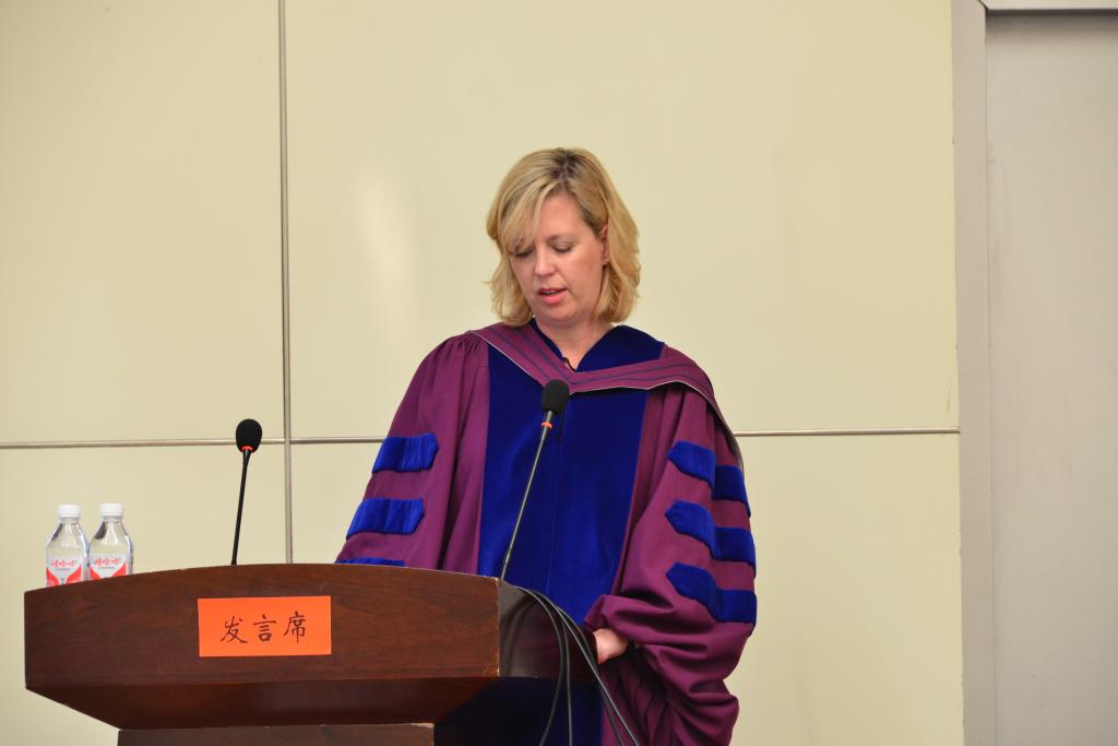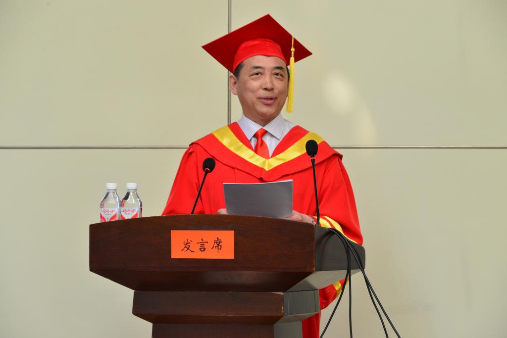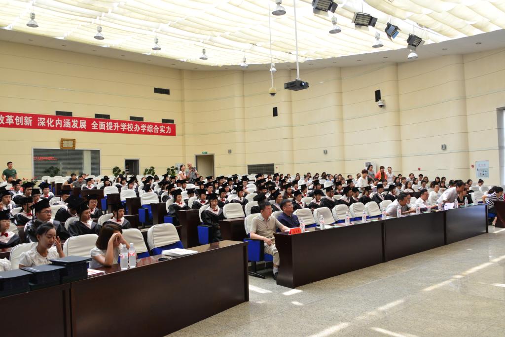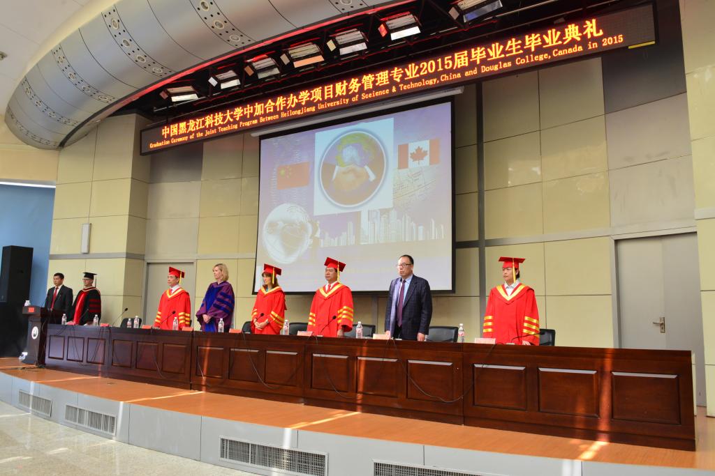 武校长在讲话中,首先向专程来校参加毕业典礼的加拿大道格拉斯学院的嘉宾和朋友表示热烈的欢迎,向辛勤育人的中外教师表示崇高的敬意,向圆满完成学业112名毕业生表示热烈祝贺。其次,武校长对两校精诚合作十一年的办学历程进行了回顾,并对该项目所取得的辉煌成绩给予了高度评价。最后,武校长向全体毕业生提出了三点希望,一是希望同学们在各自的工作岗位上,充分发挥中外合作培养的优势,主动适应国际化大环境,进一步提升国际化思维,用青春与热血、智慧与热情、荣誉与梦想创造出更辉煌的业绩;二是希望同学们胸怀祖国、放眼世界,不断塑造和完善自己,敢于创业创新,勇于追求卓越,把世界梦、中国梦与个人梦紧密结合,逐步实现自身的人生价值的同时,为中华民族的伟大复兴贡献力量;三是希望同学们毕业后像历届校友一样,继续关心、支持母校,为母校的建设和发展献计献策,同时母校永远是校友坚强的后盾,母校会一如既往地支持和关注同学们的发展与壮大。