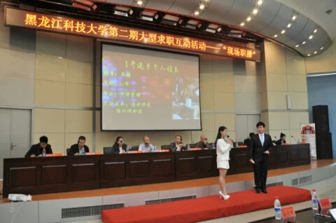 为了使【官网】大学生树立正确的就业观和择业观,提前感受求职环境,熟悉招聘流程,掌握面试技巧,提升就业能力。4月27日下午,由招生与就业工作处主办的大型模拟求职互动活动-“现场职播”在【官网】信息楼报告厅拉开帷幕,活动邀请了哈尔滨市各行业的10位企业家担任面试考官,突显了活动的针对性和实效性。副校长陈桂芝、招生与就业工作处和校团委相关人员以及部分院系辅导员观摩了此次活动。