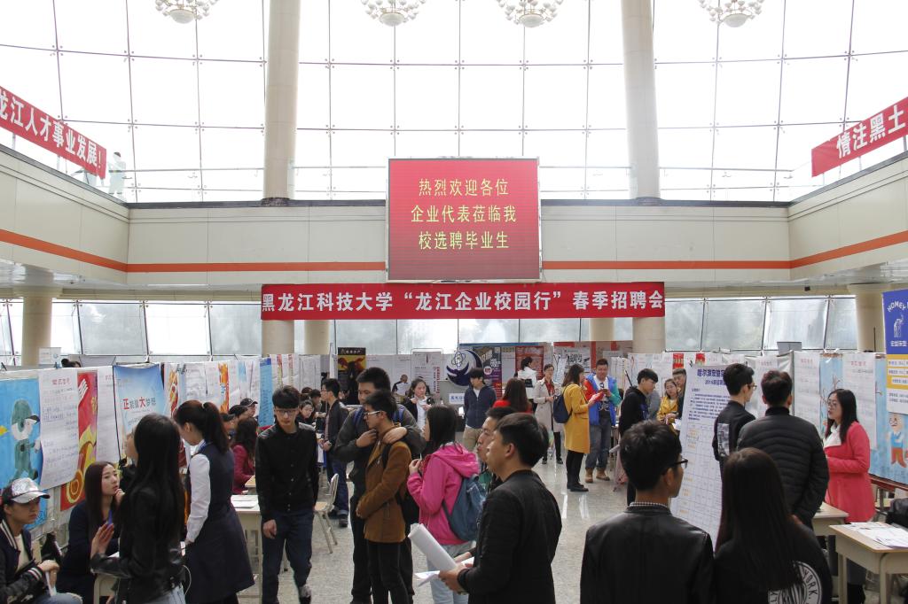 4月27日,【官网】在教学主楼阳光大厅举办了“龙江企业校园行”春季招聘会,120余家省内用人单位带来约千余个就业岗位,为有意向留在省内就业的毕业生搭建了求职平台。