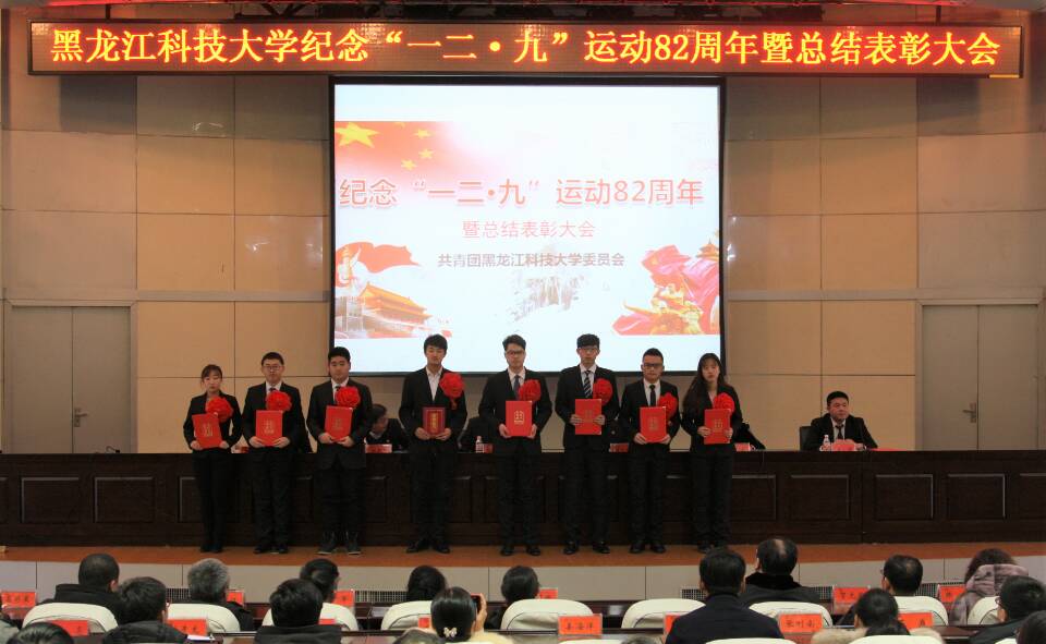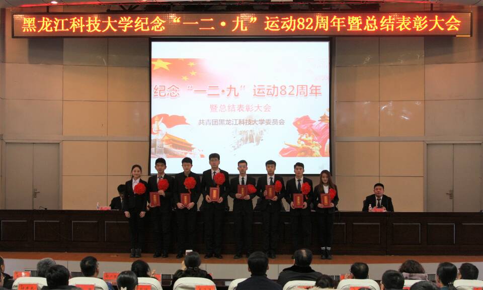 为引导和激励大学生继承和弘扬爱国精神,表彰先进,树立榜样,12月8日下午【官网】纪念“一二·九”运动82周年暨总结表彰大会在办公楼报告厅举行。校党委副书记张明华,校团委书记薛立刚,学生处副处长刘庆华,校团委副书记苗雨,校学生会主席万铄,校研究生会主席姜楠,各学院主管学生工作书记、副书记,各分团委书记、各学生分会主席以及近300名青年学生代表参加了大会。会议由校团委副书记苗雨主持。