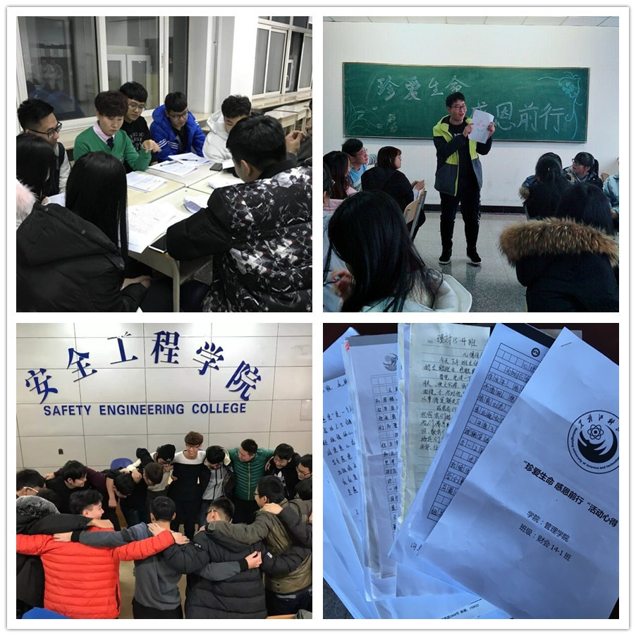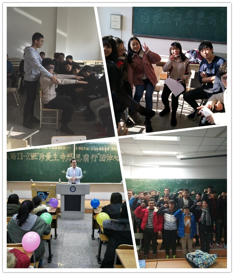 为落实“正三观、夯基础、人生路、感恩走”主题思想政治教育活动,培养学生树立正确世界观、人生观和价值观,帮助学生正确对待学业困难、家庭贫困、心理困惑、毕业就业等各种压力,不断增强学生自我调节、适应社会、承受挫折、珍爱生命、感恩父母等能力,培育自尊自信、理性平和、积极向上的心态,实现全面发展,【官网】从11月13日起利用两周的时间,在全校范围内集中开展了以“珍爱生命、感恩前行”为主题的班级团体心理活动。