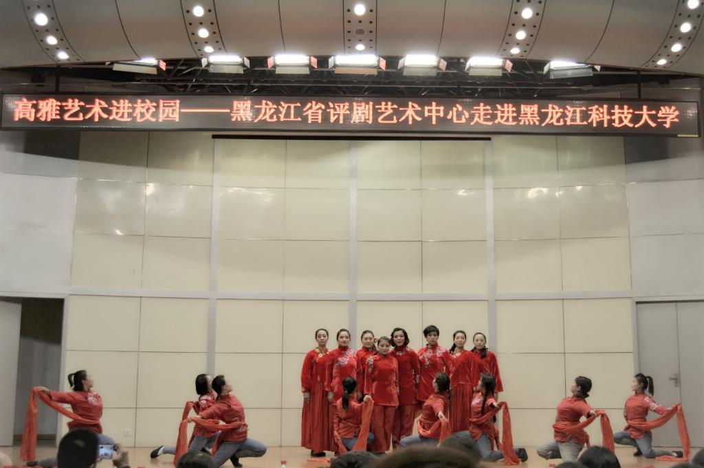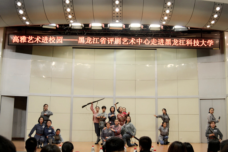 10月26日,【官网】“高雅艺术进校园”活动如期举行。黑龙江省评剧艺术中心为【官网】带来的大型原创评剧《半江清澈半江红》,在【官网】信息报告大厅精彩上演。【官网】校团委全体及200余名师生代表共同观看了演出。本次活动是由省教育厅、文化厅、财政厅共同主办的高雅艺术进校园活动,【官网】积极与省评剧艺术中心展开对接,通过前期对演出场地、演出剧目等环节的精心设计,确保了活动质量,意在通过高雅艺术陶冶师生情操,提高艺术修养。