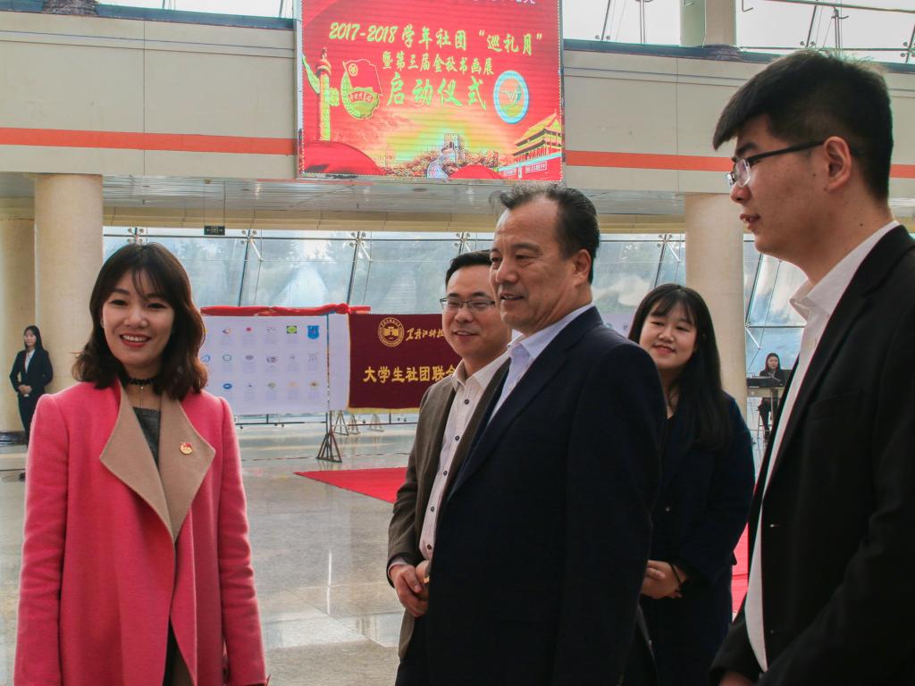 启动仪式上,校党委副书记张明华宣布“不忘初心跟党走青春喜迎十九大”--OD在线2017年社团巡礼月暨第三届金秋书画展开幕。校团委书记薛立刚代表校团委致辞。