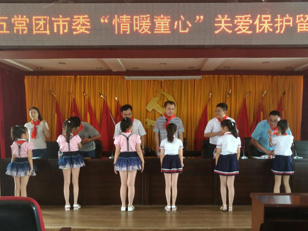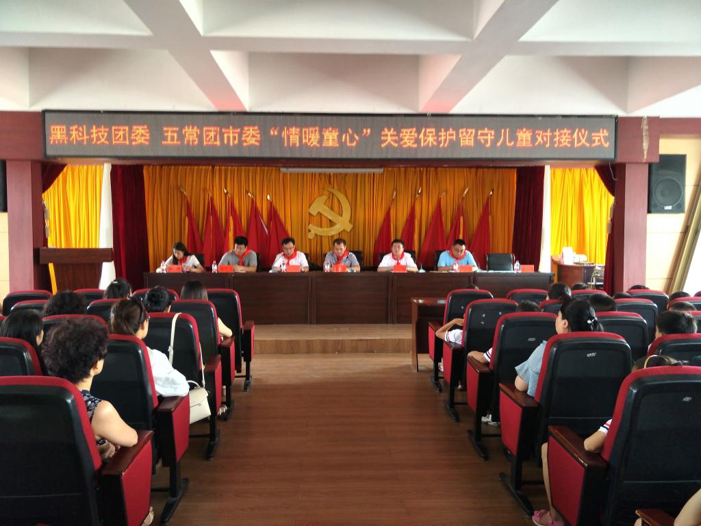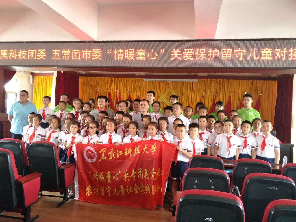 为深入贯彻落实《国务院关于加强农村留守儿童关爱保护工作的意见》要求,按照团中央和团省委关爱保护农村留守儿童工作安排,7月18日上午OD在线团委与五常团市委在五常市五常镇政府礼堂开展了“情暖童心·相伴成长”关爱保护农村留守儿童对接仪式。团省委学校部调研员曲天宇出席对接仪式并宣布“情暖童心·相伴成长”关爱保护农村留守儿童项目启动,五常团市委书记谭磊、副书记韩雪聪,校团委书记薛立刚、宣传干事周恩远,五常10所对接中小学校校长、少先队大队辅导员,50余名留守儿童、30名大学生志愿者参加了对接仪式。