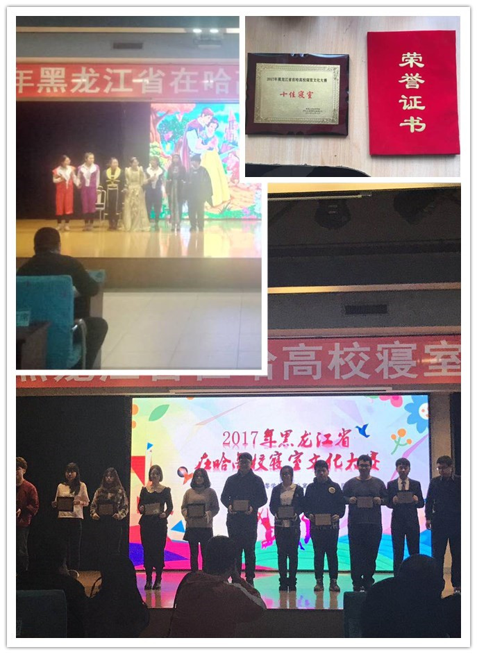 12月17日上午,2017年黑龙江省在哈高校寝室文化大赛在哈尔滨工程大学启航活动中心圆满落下帷幕。经过初赛的选拔与推荐,10所在哈高校的20个寝室参加了此次大赛,【官网】电气学院第12公寓125寝室和理学院第5公寓126寝室作为全校寝室的代表参加比赛。 比赛中,参赛寝室通过精心制作PPT、VCR视频凝练寝室文化、展示寝室风采。才艺表演环节,12公寓125寝室的小品《宅男》立意深远,倡导同学们远离校园贷,5公寓126寝室的情景剧《新白雪公主》诙谐幽默,引导青年学生树立正确价值取向。经过激烈角逐,第12公寓125寝室获得“十佳寝室”荣誉称号,第5公寓126寝室室获得“优胜奖”荣誉称号。