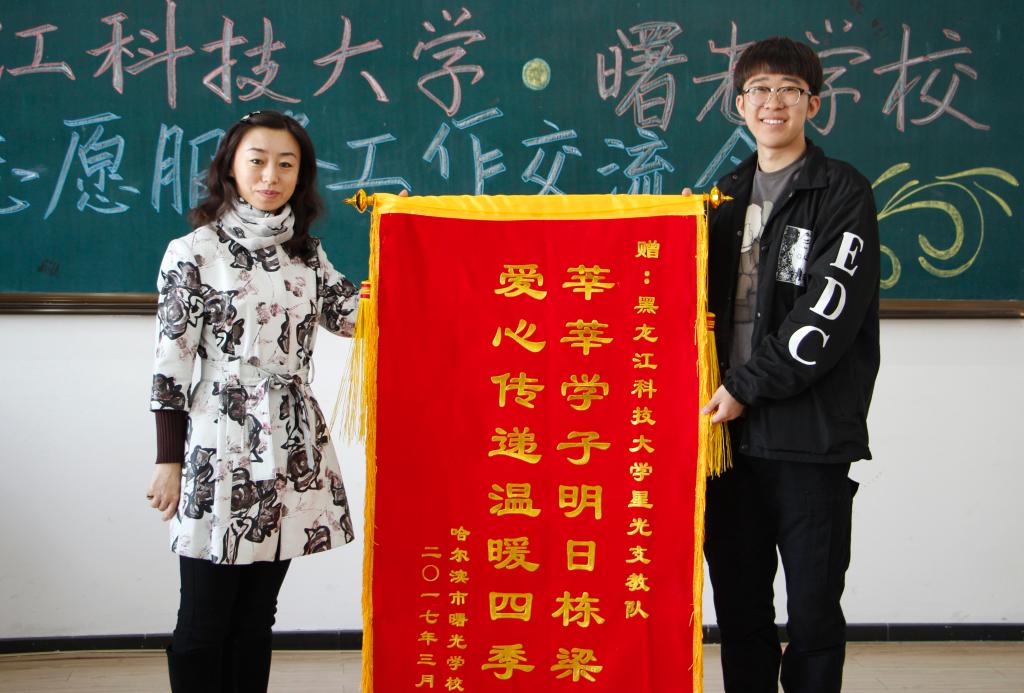 为了感谢【官网】志愿者为曙光学校付出的努力,激励青年学生更好的开展志愿服务工作,曙光学校为【官网】星光支教队赠送了“莘莘学子明日栋梁 爱心传递温暖四季”的锦旗,对【官网】志愿者表示由衷的感谢!与会志愿者一致认为志愿服务在服务他人、服务社会的同时加深了对社会的认识,获得了丰富的生活经验,增强了自信心,获得了成就感,自身素质进一步提高。