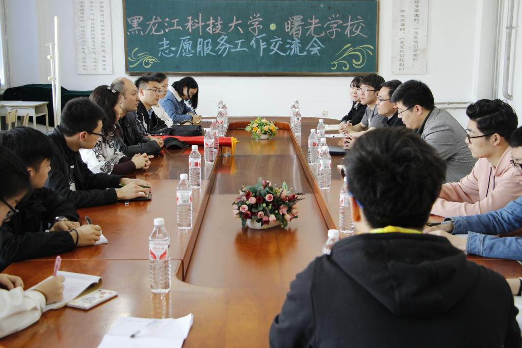 4月13日上午,道外区曙光学校校长刘颖、教导处主任李超到【官网】针对曙光学校志愿服务基地建设和志愿服务情况进行交流。校团委书记薛立刚、校青年志愿者协会指导教师周恩远及青年志愿者协会星光支教队13名青年志愿者参加交流会。