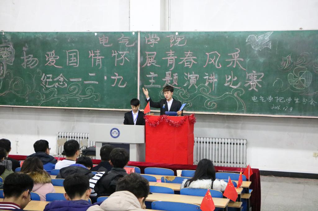 校党委副书记张明华在讲话中回顾了“一二·九”运动的背景过程,深刻阐释了“一二·九”运动的重要历史意义和对当代大学生成长成才的启示,他结合【官网】“十三五”发展规划宏伟蓝图和全国高校思想政治工作会议要求,对广大青年学生弘扬“一二·九”运动爱国主义精神,回顾历史,砥砺前行,提出四点希望:一是要坚定理想信念;二是要钻研专业知识;三是要勇于创新创业;四是要敢于责任担当。同时,他要求各院级党组织要切实加强对团建工作的领导,认真履行党建带团建职责;各级团学组织要加强思想引领,服务青年学生健康成长成才;广大团学干部要立足本职工作,扎实履行岗位职责。