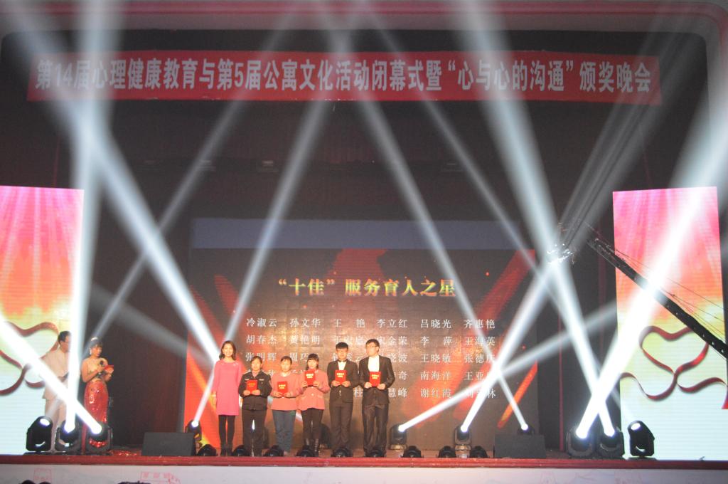 立德树人,与爱同行。12月1日晚,第十四届心理健康教育与第五届公寓文化活动闭幕式暨“心与心的沟通”颁奖晚会在俱乐部举行。校党委副书记张明华、学工部领导出席闭幕式并为获奖单位颁奖。各学院负责学生工作领导、学工部全体工作人员、全体辅导员及师生代表共同观看了晚会。
