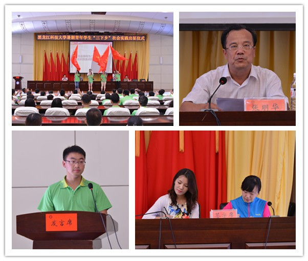 会上,校党委副书记张明华作了重要讲话。他指出,在喜迎中国共产党成立95周年之际组织这项社会实践活动,是对广大学生进行爱国主义教育的重要举措,具有特殊意义。暑期青年学生“三下乡”社会实践活动是同学们接触社会、增长见识的广阔平台,也是同学们展示才华、奉献社会、砥砺品质的难得机会,更是一个运用专业知识、积攒工作经验、丰富社会阅历的一个良好平台。在参与实践中,同学们进一步掌握专业知识,不断陶冶情操、磨练意志、完善心理,不断提升综合素质和能力,使自己在社会实践中“受教育、长才干、做贡献”。同时,张明华书记对参加社会实践的青年学生提出四点殷切希望:一是希望同学们坚定理想信念,以社会实践为契机磨练意志、奉献社会;二是希望注重创新形式,以社会实践为载体建立实践育人长效机制;三是希望同学们加强舆论导向,以社会实践为媒介营造良好的舆论氛围;四是希望同学们凝聚榜样力量,以社会实践为平台展现【官网】大学生的良好风貌。