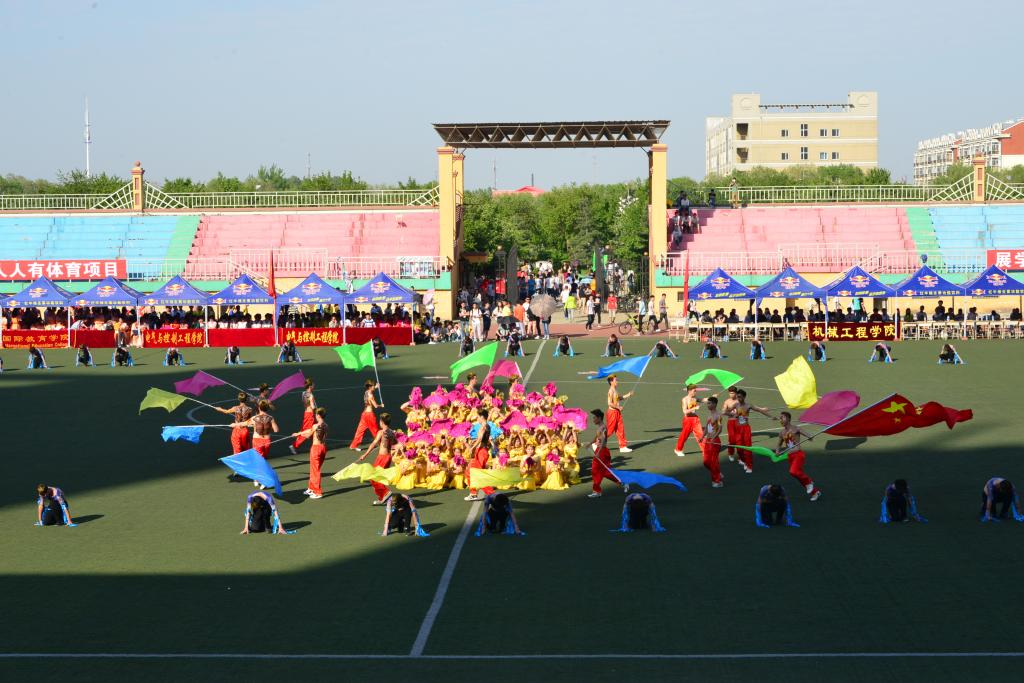 春回大地,万物复苏,菁菁校园,尽是青年学生运动的身影。为进一步推进大学生“走下网络、走出宿舍、走向操场”主题群众性课外体育锻炼活动,激发广大青年学生参加体育锻炼的主观能动性,形成良好的体育锻炼习惯,5月24日,【官网】在田径运动场隆重举办大学生“三走”活动推进大会暨第十九届“青苹果”杯集体舞大赛。校党委常委、副校长陈桂芝,校党委常委、宣传(统战)部部长于成学,学生处、教务处、后勤处、体育部、校团委等部门负责人以及各学院分管学生工作的书记、副书记和分团委书记参加了本次活动。为保证比赛的公平公正公开性,校团委副书记苗雨,体育部舞蹈教研室教师刘红辉、刘聪、冯宇,离退办李丽、宗秋,工程实训中心教师桑林担任本次比赛评委。