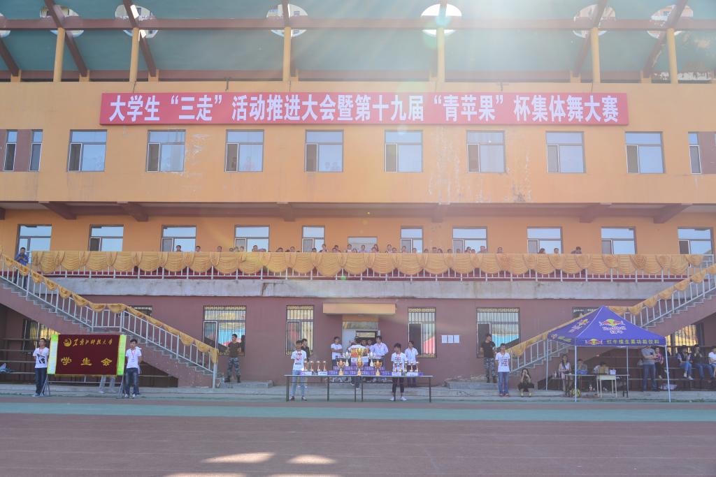 “青苹果”杯集体舞大赛结束后,校团委书记薛立刚对【官网】大学生“三走”活动上一阶段工作进行总结,对下一阶段工作进行部署,同时,宣读了2014年度大学生“三走”活动先进集体、优秀个人和优秀项目的表彰决定。在场领导为受表彰的先进集体、个人、社团进行了表彰。一年来,【官网】结合学校特点和实际,以大学生“三走”活动立项为依托,积极倡导和组织课外体育锻炼,开展了以“火神杯”篮球赛、“奔跑吧,社团”、OD在线“吉尼斯”体育趣味活动、“飞跃杯”越野赛、“舞动青春七彩心灵”广场舞大赛、班级拔河比赛等校、院、班、寝室、个人多层面群众性体育活动,在全校范围内形成了“班班有体育活动,人人有体育项目”的生动局面,帮助青年学生形成健康体魄、培育团队意识和拼搏精神。