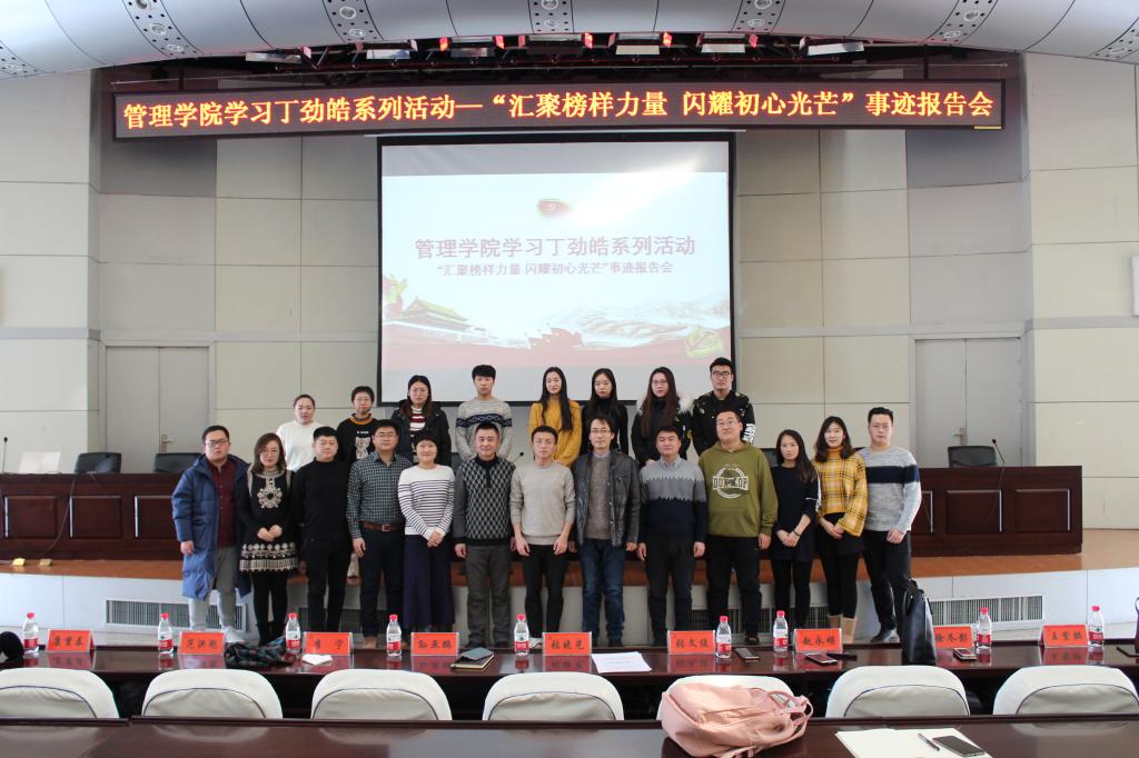 为进一步汇聚榜样力量,激发广大学生学习热情和进步意识,有力促进人才培养质量上水平,管理学院按照“中共OD在线委员会关于开展向丁劲皓同学学习活动的决定”(黑OD在线发[2018]23号文)要求和“关于开展坚持‘以本为本’落实‘四个回归’本科教育思想大讨论”部署,紧密围绕实际,组织开展了题为“汇聚榜样力量,闪耀初心光芒”向“大学生道德模范人物”丁劲皓同学学习的系列活动。