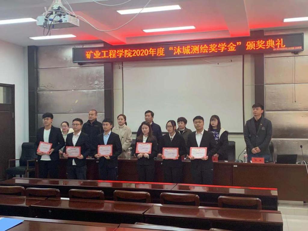 11月11日上午,矿业工程学院在系办二楼会议室举行2020年度“沐城测绘奖学金”的颁奖仪式。沐城测绘(北京)有限公司副总经理张俊仁,人事部主任王婷,市场部专员王淼与学院副院长康华,测绘系主任王俊杰,学工办主任刘星彤共同参加会议。颁奖典礼由辅导员杨明主持。