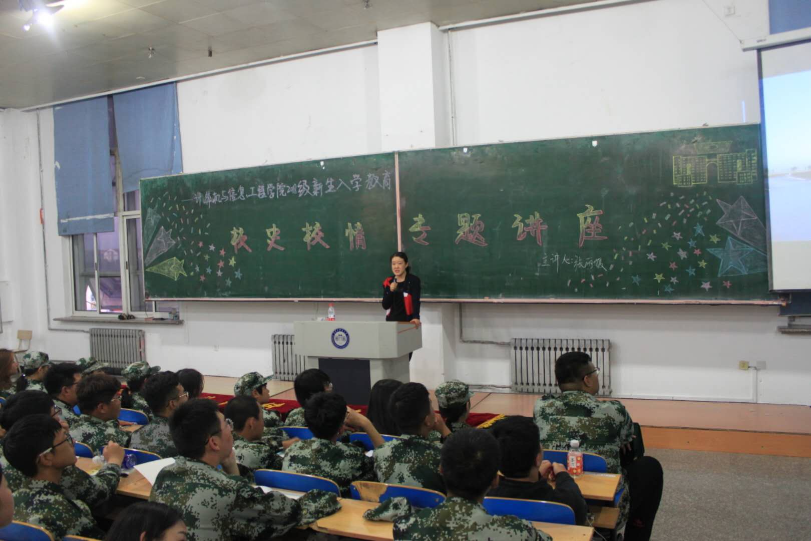 9月15日下午,学院党委副书记张丽媛面向新生开展校史校情专题讲座。首先向2018级新生的到来表示欢迎,并对同学们热情认真的态度表示肯定。张丽媛围绕学校建校、合并、迁址、更名、跨越的历史进程,结合图片和文字向同学们讲解了【官网】悠久的校史与校情,勉励学生要继承和发扬“自强不息、创业创新”的办学精神,牢固树立主人翁意识和责任感,不忘使命、勇担重任,为学校的繁荣发展添砖加瓦。讲座中,她还与同学们交流了大学学习的重要性。学风是学校的灵魂,学习是大学生的主业,希望同学们摒弃懒惰懈怠的思想,刻苦读书,保质保量的完成学业。