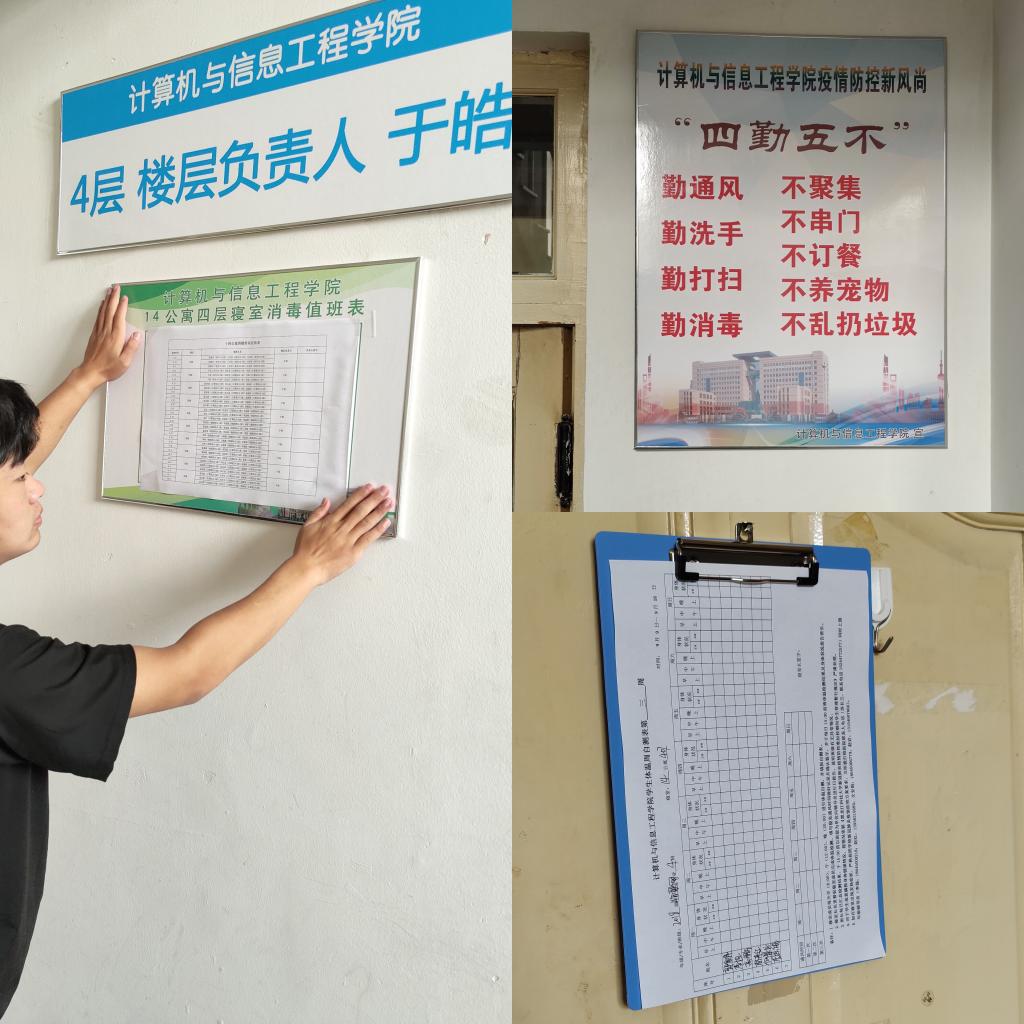 与此同时,各学院团委还利用返校第一周,深入开展了防疫知识宣讲和文明寝室创建活动。理学院团委在隔离寝室为大家宣讲防疫措施,计算机学院团委在寝室楼宣传板上提出防疫“四勤五不”,创新提出寝室疫情防控新风尚;马克思学院团委开展“抗疫情、讲文明、爱劳动、树形象”文明寝室建设活动。