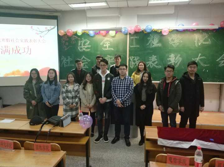 为了更好的引导增强服务社会的意识,增强大学生社会责任感,安全工程学院于3月23日傍晚,在科厦N101召开2017-2018学年寒假社会实践表彰大会,旨在表彰在寒假社会实践中成绩突出的先进个人。安全工程学院分团委书记付彦龙,各二级学院团委副书记出席了大会。此次大会由付彦龙主持,安全工程学院2017和2016级学生参加了会议。