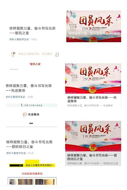 据悉,学院通过微信公众平台连续推送三期先进典型事迹,弘扬榜样精神,凝聚榜样力量。