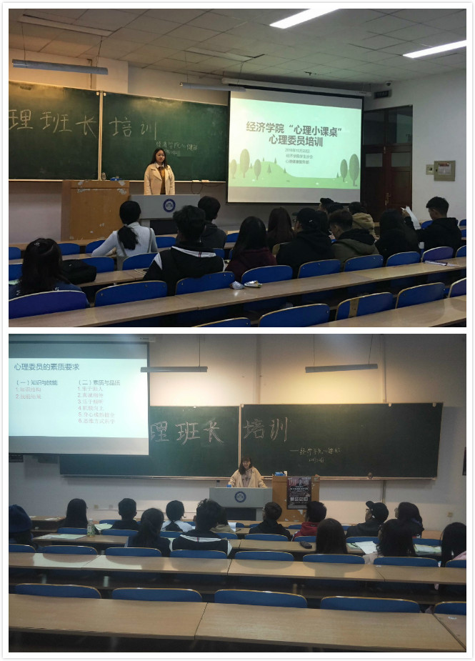 10月22日、11月1日两天晚上,经济学院在主楼WS0304分两期面向2018级心理班长举办了“心理小课桌”素质培训。