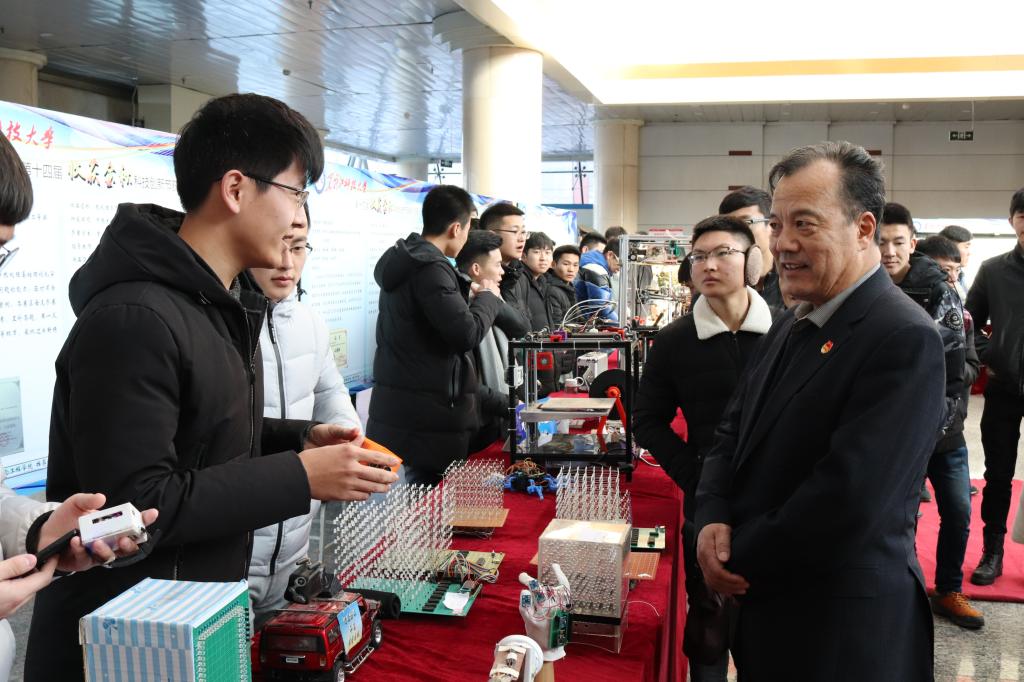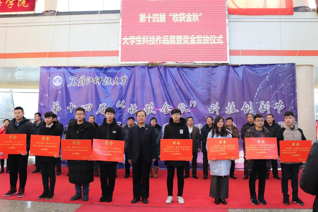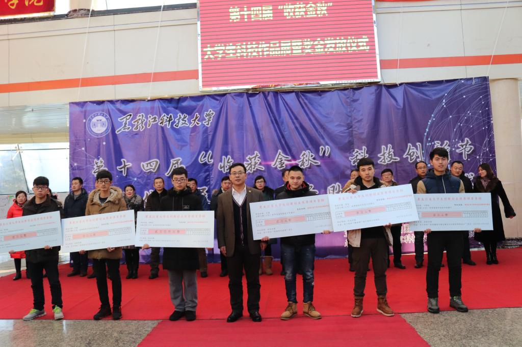 为学习贯彻党的十九大精神,提升【官网】青年学生创新创业意识,营造浓郁的“大众创业·万众创新”的校园氛围,12月18日,【官网】第十四届大学生“收获金秋”科技创新节优秀作品展暨项目资助金发放仪式在阳光大厅举行。校党委副书记张明华,校团委、教务处、各学院相关领导,各学院团委书记、负责大学生科技工作辅导员以及校院两级大学生科技协会成员300余名青年学生参加了本次活动。