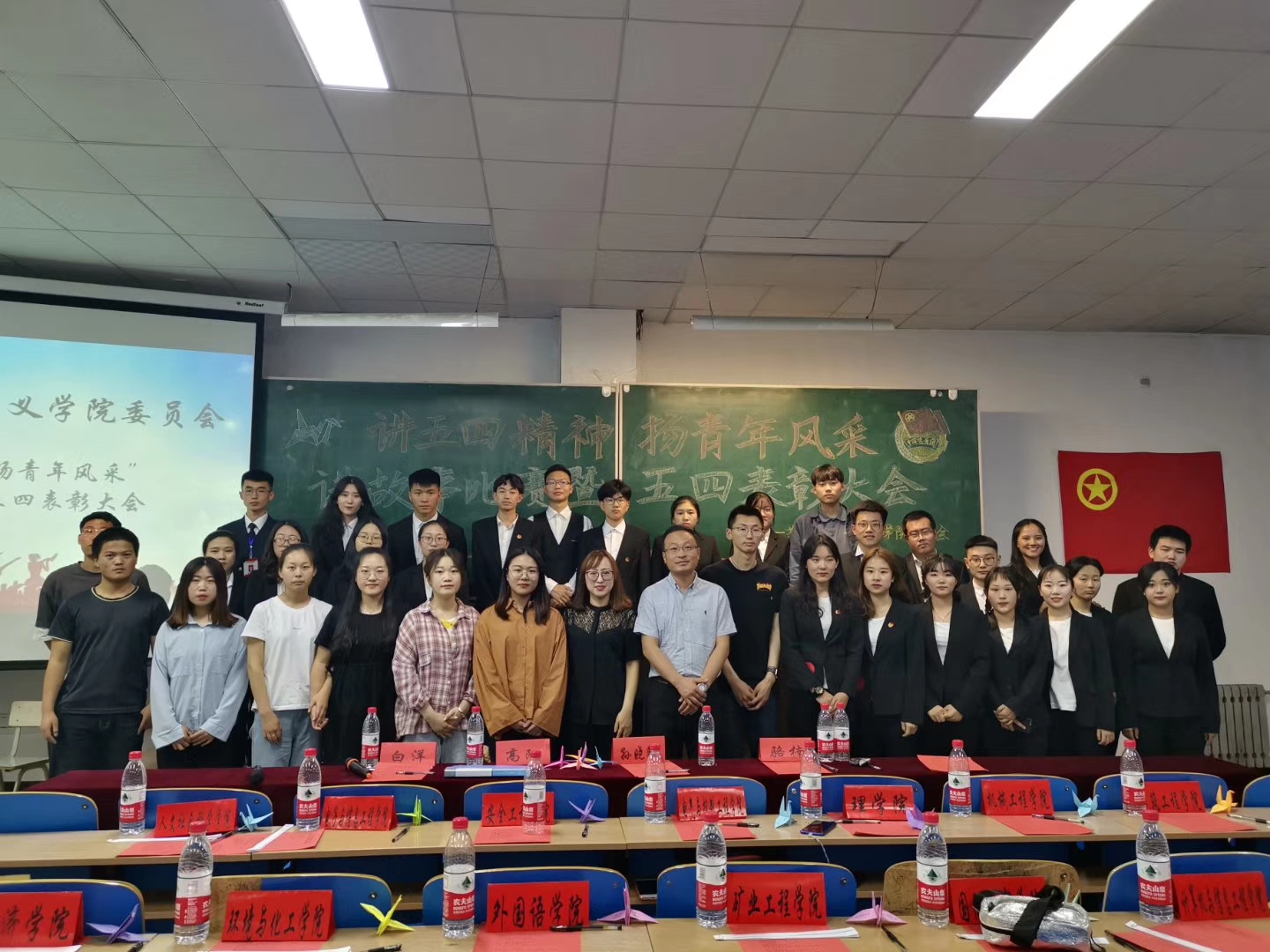 本次“讲五四精神扬青年风采”讲故事大赛在学生中反响强烈,学生们参赛踊跃,共有六支队伍参赛。不同的参赛队伍从不同的故事中弘扬了五四精神,从五四学生运动爆发的历史背景到改革开放后的新时代蓝图,从铁骨铮铮李大钊到巾帼英雄邓颖超,从大无畏的牺牲精神到救民救国的赤子之心,参赛选手既是在重现历史的五四,更是在谱写新时代的五四。其中“舞动鑫田队”获得了一等奖;“红色说书人队”和“NIKE队”获得了二等奖;“风之彩队”、“刘liu小分队”和“CD队”获得了三等奖。活动在青年学生们满怀深情、热情的掌声中落下了帷幕。
