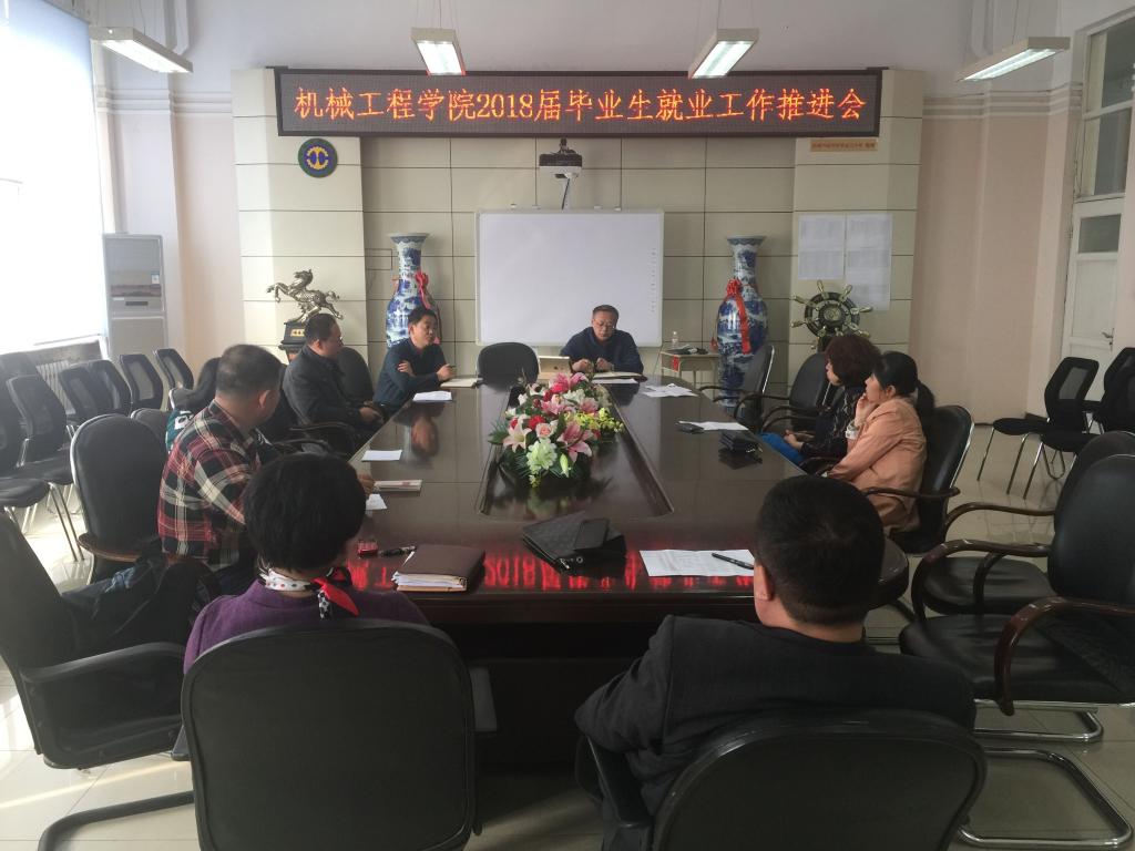 为了进一步推进就业工作,实现就业率和就业质量双高,机械学院于3月27日中午在二楼会议室召开2018届毕业生就业工作推进会。机械学院党委副书记吴新文、副院长吴卫东出席了会议。全体毕业班班主任参加了会议。会议由辅导员郝鑫主持。