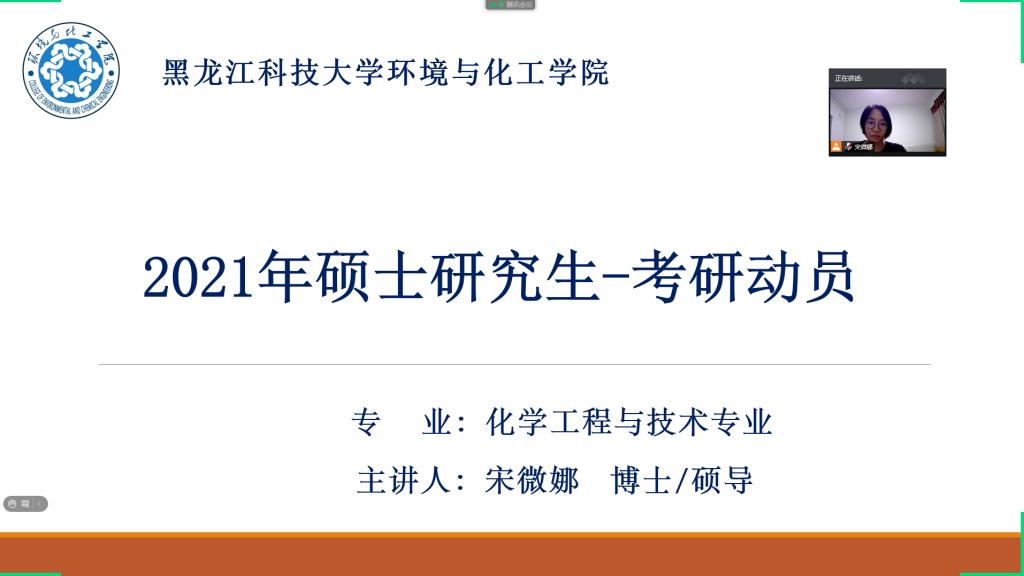 为了进一步激发2021届毕业生和18级学生考研的内在动力,以便更好的了解专业知识、明确考研目标、掌握考研技巧,9月16-18日,环化学院环境工程专业硕士生导师李立欣、化学工程与工艺专业硕士生导师宋薇娜、董永利分别为2021届毕业生和18级学生做了考研动员讲座。