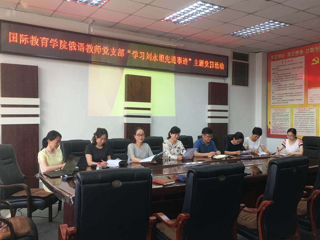 为深入学习贯彻习近平新时代中国特色社会主义思想,贯彻落实省委十二届五次全会精神,推进“两学一做”学习教育常态化制度化,为即将开展的“不忘初心、牢记使命”主题教育做好思想准备,激励全体党员弘扬爱国奋斗精神,充分发挥先锋模范作用,为学校高质量发展建功立业,7月10日下午四点,国际教育学院党委俄语教师党支部全体党员在0606会议室举办了“学习刘永坦先进事迹”主题党日活动。党委书记邬承斌、院长母丽华以普通党员的身份参加了活动,主题党日活动由俄语教师党支部书记刘淑梅主持。