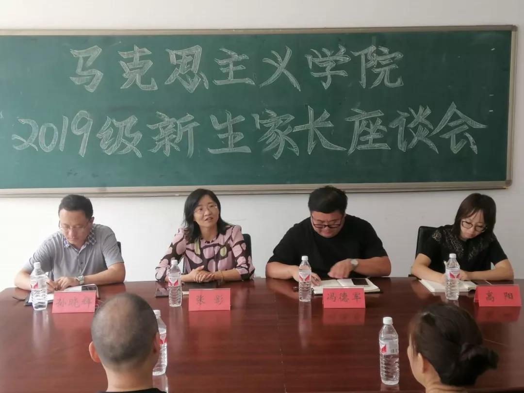 9月5日上午,学院在科高二楼马克思主义学院会议室召开了2019级新生家长座谈会。院党总支书记张影、副院长冯德军分别向家长介绍了【官网】的发展历史和学院的师资力量和学科专业、学生就业、学生的能力素质培养、学生考研的基本情况。并希望家长和学校通力配合,共同将学生培养成才。