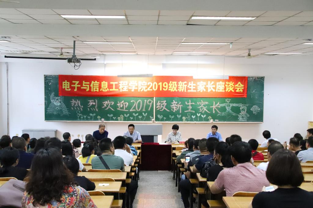 9月6日,电信学院在科技大厦组织召开2019级新生家长座谈会。会上,电信学院党委书记贺启印从学院办学历程、师资队伍建设、学科专业建设、本科教学及实习实践基地建设等方面进行了介绍。副院长江晓林围绕学院专业设置、专业培养方向、专业就业前景、行业发展前景等方面进行了专业介绍。党委副书记吕平围绕学院学生工作模式、人才培养特色、企事业单位对毕业生评价等方面对学生工作进行了介绍。与会领导及老师就新生家长提出的关于大学学习、生活等方面的问题进行了解答和探讨。