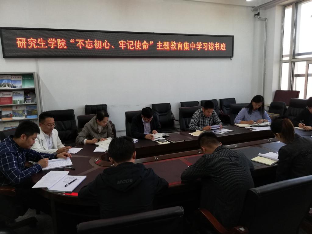 9月20日,在研究生学院会议室,学院领导班子集中自学了《OD在线“不忘初心、牢记使命”主题教育学习材料汇编》和《黑龙江省“不忘初心、牢记使命”主题教育学习参考资料》等。