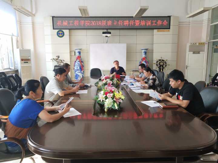 为了提升工作质量,规范班级日常管理,进一步落实《机械工程学院班主任工作条例》和本科生导师制度,机械工程学院于8月31日在学院二楼会议室组织召开了2018级班主任聘任暨培训工作会,学院党委副书记吴新文及班主任参加了会议,会议由张岩主持。